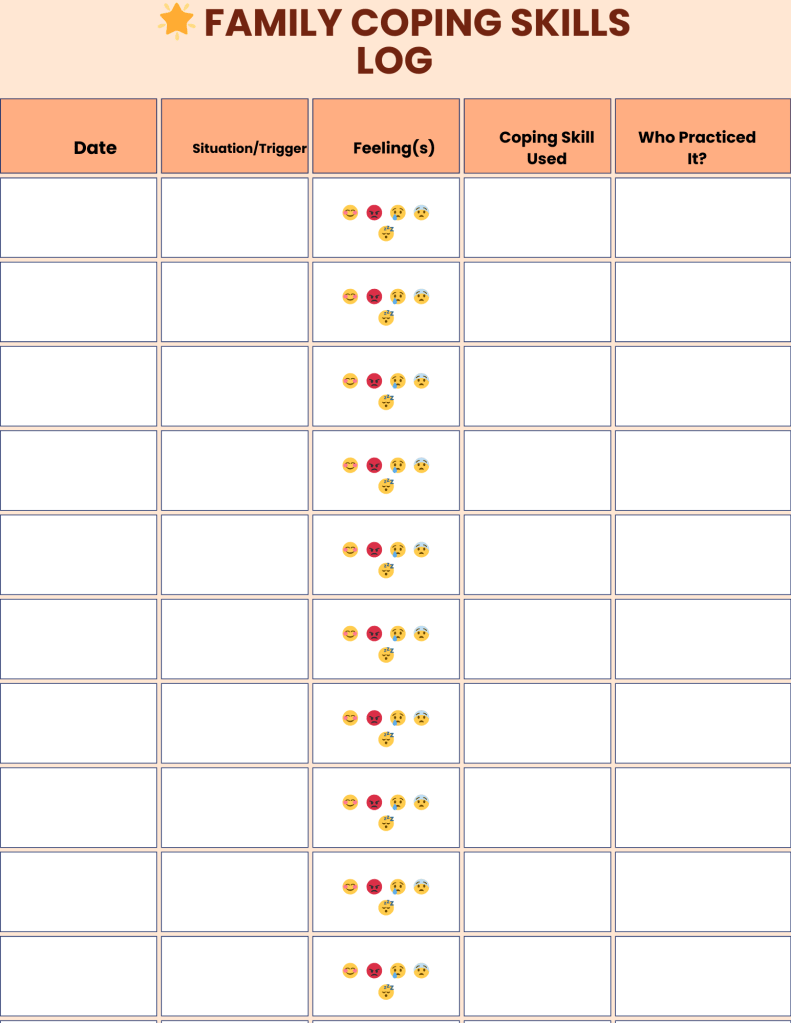 👨‍👩‍👧 Family Coping Skills Log