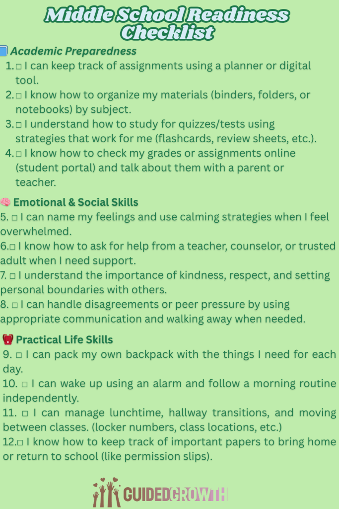 Middle School Readiness Checklist